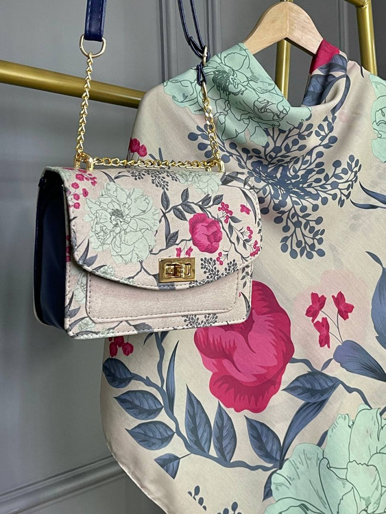 ست کیف و روسری آلاله نسکافه ای (B2)